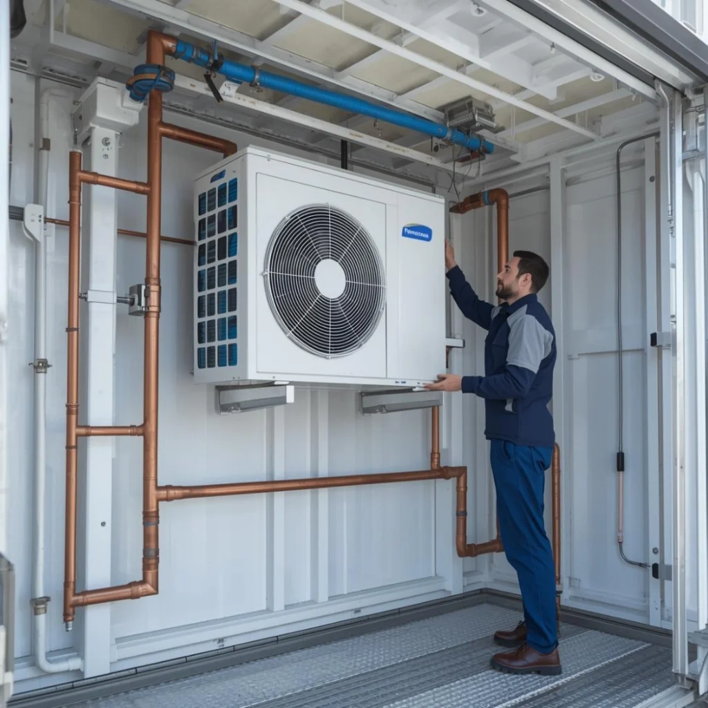 Improper installation can cause high discharge pressures, refrigerant leaks, overheating, inefficient cooling, excessive energy consumption, and premature compressor failure. Professional installation ensures correct refrigerant charge, airflow clearance, and electrical integration.