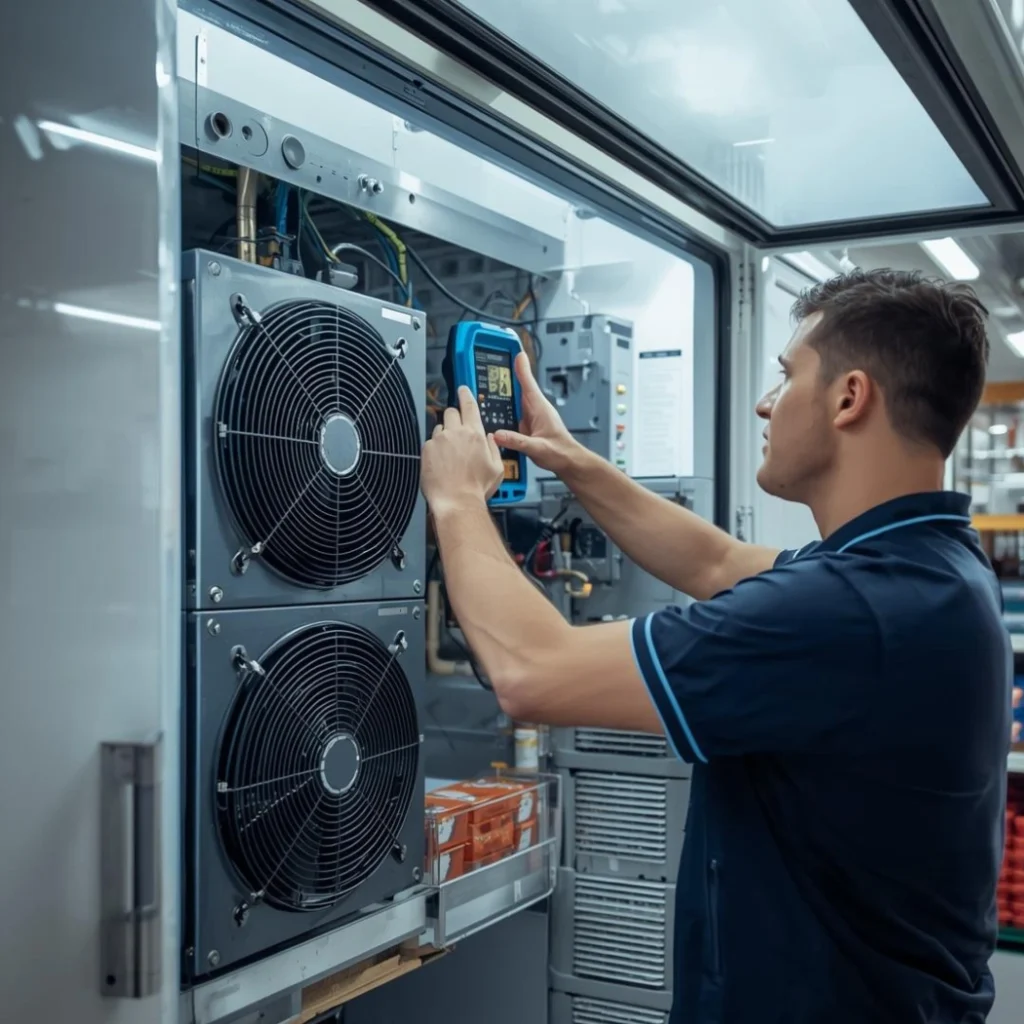 Our outdoor cold room service includes refrigerant pressure checks, compressor testing, condenser and evaporator cleaning, seal and vapour barrier inspection, defrost system calibration, airflow optimisation, electrical safety testing, and full compliance documentation.
